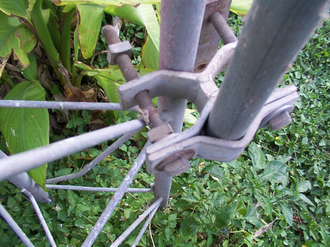3. the guy wires. If they're bad then just get some 1/8" galvanized wire from the hardware store (it's cheaper than dying) and make new guy wires for the tower as you climb it, one set at a time. The guy wires don't have to be any more than hand tight, to tell you the truth, and that wire is easy to work with. Get some of the small u-clamps if you buy this wire.